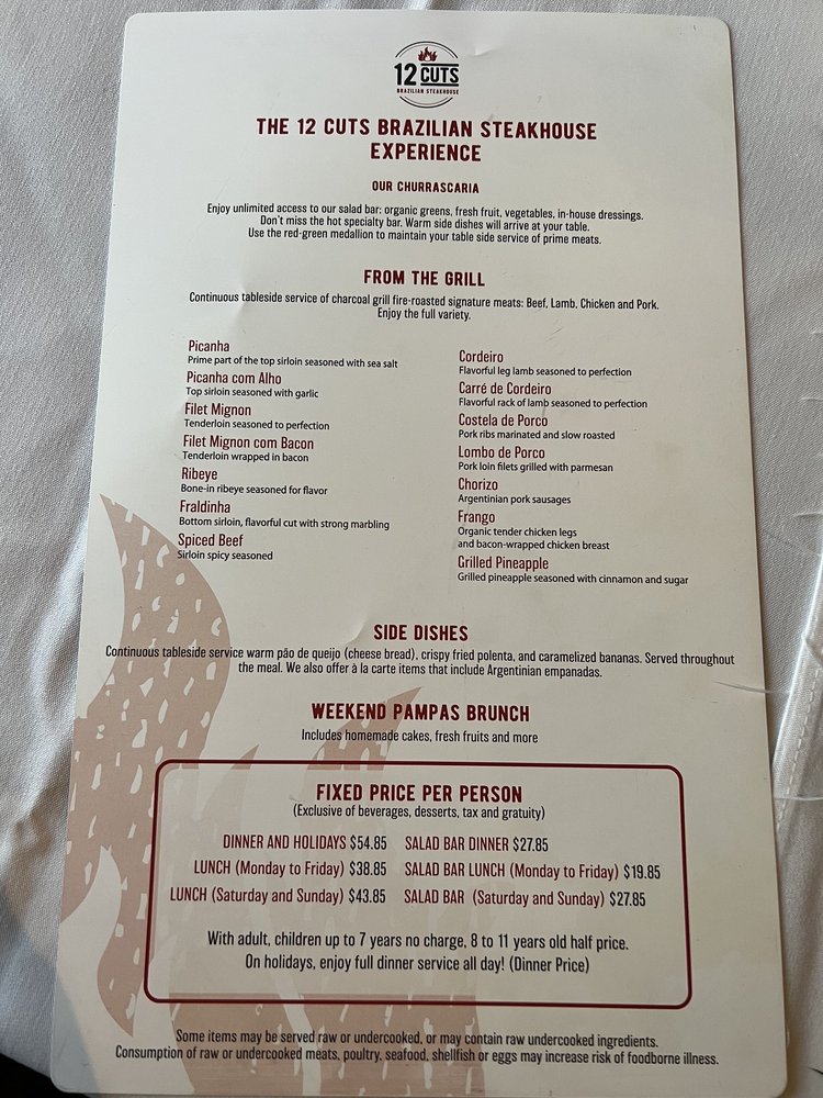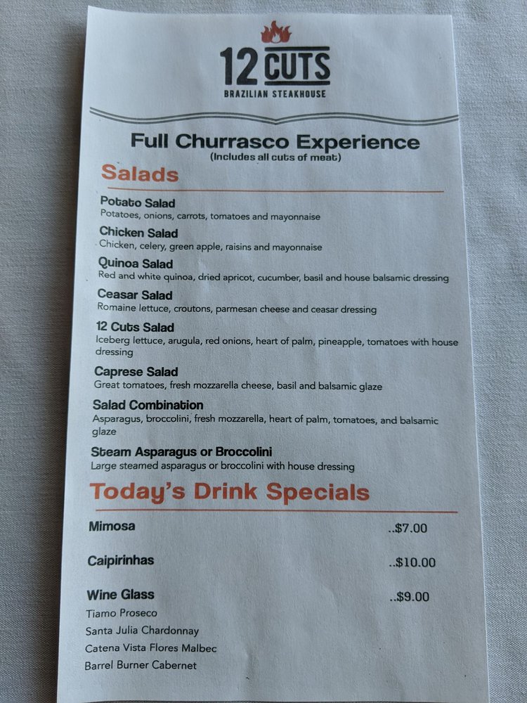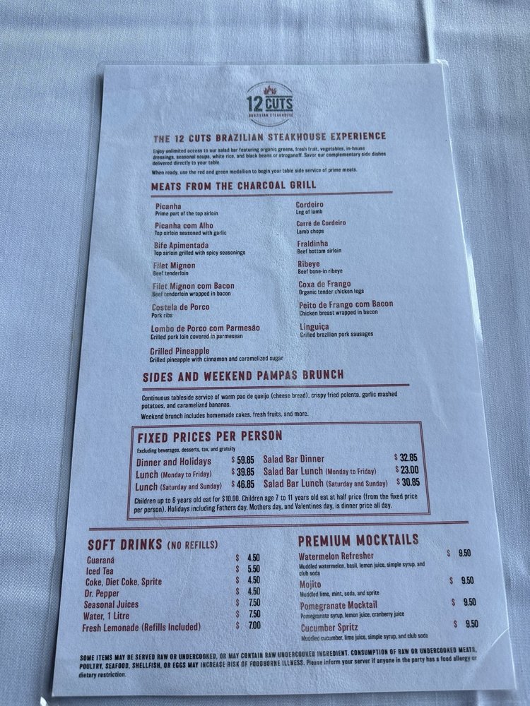12 Cuts Brazilian Steakhouse Menu (2025 Update)